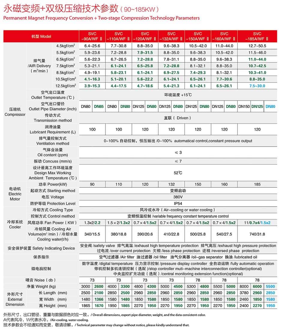 | 機型 | S-15AF Ⅱ | S-18AF Ⅱ | S-22AF Ⅱ | S-30AF Ⅱ | S-37AF Ⅱ | S-45AF Ⅱ | S-55AF Ⅱ | S-75AF Ⅱ | S-90AF Ⅱ | ||||||||||||||||||||||||||||||||